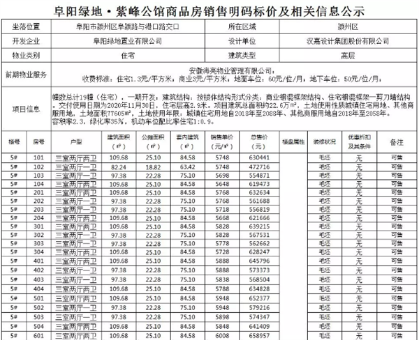 9月20日,阜阳市发展和改革委员会(阜阳市物价局)公布了阜合新城的阜阳绿地·紫峰公馆和经开区的天盛凤凰城住宅备案房价共备案757套住宅房源其中绿地紫峰公馆最高备案单价仅6538元/㎡而天盛凤凰城最低备
